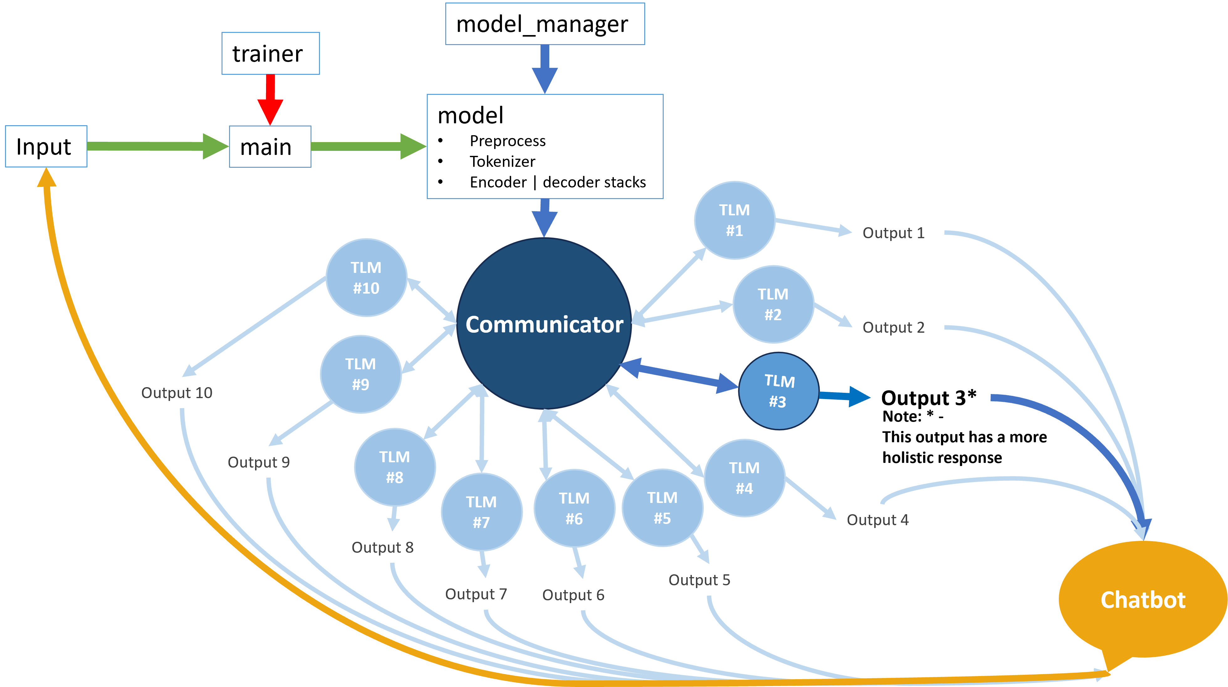 ‘communicator’ module routes the specific type of prompt, to relevant TLM instance.