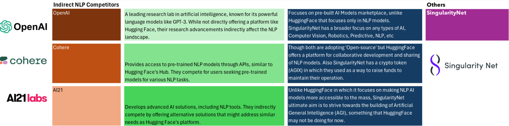 Then we have SingularityNet that instead of focusing on just LLM, they are opened to various types of AI, from computer vision to robotics, to self-driving automation systems, etc, and instead of an Collaborative platform like HuggingFace, it offers a marketplace for pre-built AI models. SingularityNet also has its own Crypto token called ‘AGIX’ where investors buy to be part of their ‘vision’ of building AGI (Artificial General Intelligence). These two organization are the inspiration for us.